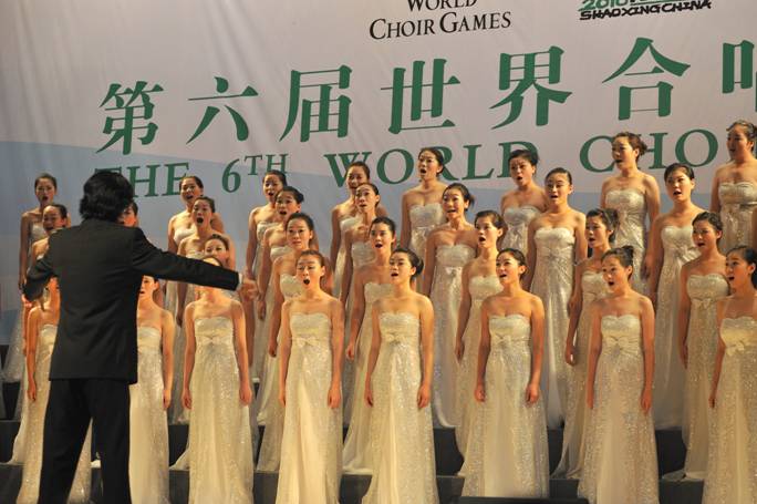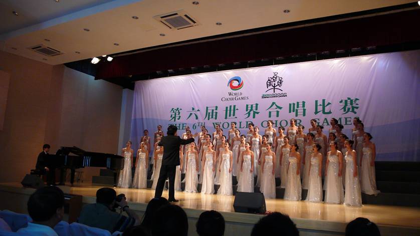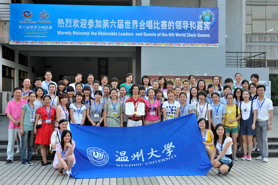 第六届世界合唱比赛于2010年7月15日在绍兴隆重开幕,77779193永利官网女声合唱团在比赛中精彩演绎了《山在虚无缥缈间》、《Mata del Anima Sola》(《孤独的树》)、《Sakura Sakura》(《樱花》)、《李有松》(温州方言)等中外作品,在众多团队中脱颖而出,以总分81.38分喜获“第六届世界合唱比赛——锦标赛”女声合唱组的金奖,展现了温大学子的风采,为学校和中国争得了荣誉。颁奖典礼现场,队员们激动不已,热泪夺眶而出,紧紧拥抱在了一起;指挥叶文辉老师上台接受了国际文化交流基金会、世界合唱比赛艺术总监艾森拜斯教授的祝福和颁奖。