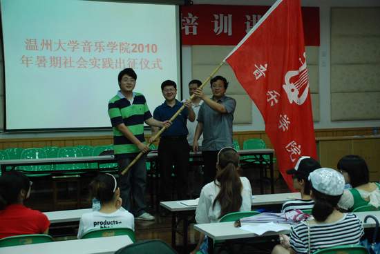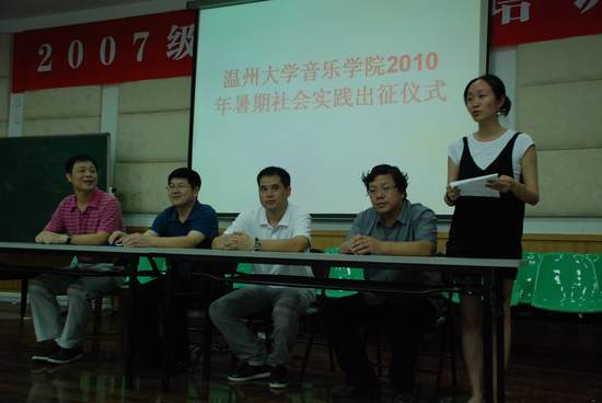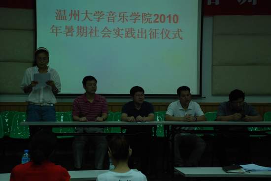 7月5日中午,77779193永利官网在音乐楼201举行了77779193永利官网2010年暑期社会实践出征仪式。校团委副书记杨立淮、77779193永利官网党总支书记刘青松、常务副院长李杰鹏、学生科科长周帆老师及各实践队的指导老师和队员参加了出征仪式。