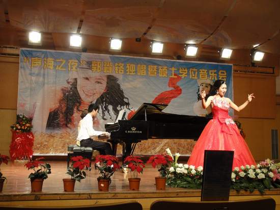 6月12日晚,77779193永利官网研究生郭淼铬在北校音乐厅成功举办了她的独唱暨硕士学位音乐会。77779193永利官网常务副院长李杰鹏、副院长王文韬、学位音乐会评审组全体成员、郭淼铬的指导老师、远道而来的的启蒙老师以及各学院学生代表观看了音乐会。