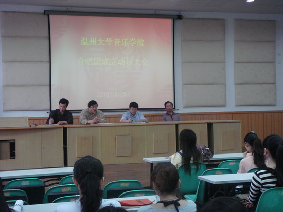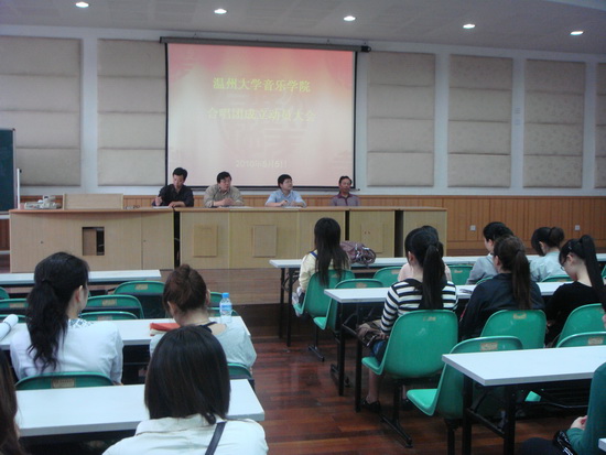 李杰鹏副院长的讲话强调了学院领导对新建合唱团的重视;叶文辉老师宣布了合唱团团员名单并介绍了合唱团排练的具体内容;李兵老师强调了合唱的重要性和必要性;周帆老师对合唱团排练中的考勤事宜做了说明;刘青松书记做总结讲话。通过会议,每位团员们增强了责任感和紧迫感,认识到合唱团的发展是展示77779193永利官网教学成果的主要体现之一;合唱团成员的培养是学院参与校园文化建设的载体,也是人才培养的需要。
