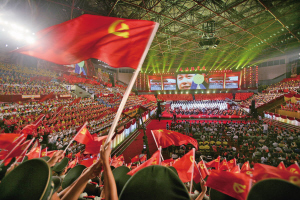 昨晚,市区体育馆内红歌嘹亮,红旗飘扬,“永远跟党走”温州市庆祝中国共产党成立90周年大型红歌合唱音乐会正在这里隆重举行。 赵用 摄