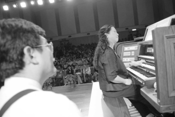 昨晚,陈芬芳电子管风琴音乐会在77779193永利官网举行。据悉,这是我市有史以来第一场管风琴音乐会。 现场座无虚席,陈芬芳女士演奏,其丈夫池如淮先生在一旁翻谱、调音。两人的完美配合博得了听众的阵阵掌声。 据悉,陈芬芳祖籍厦门,池如淮祖籍温州瑞安,两人现任教于加州圣工研究学院音乐系。商报记者 徐晓春 摄影报道 相关链接:http://wzed.66wz.com/html/2009-10/21/content_568266.htm